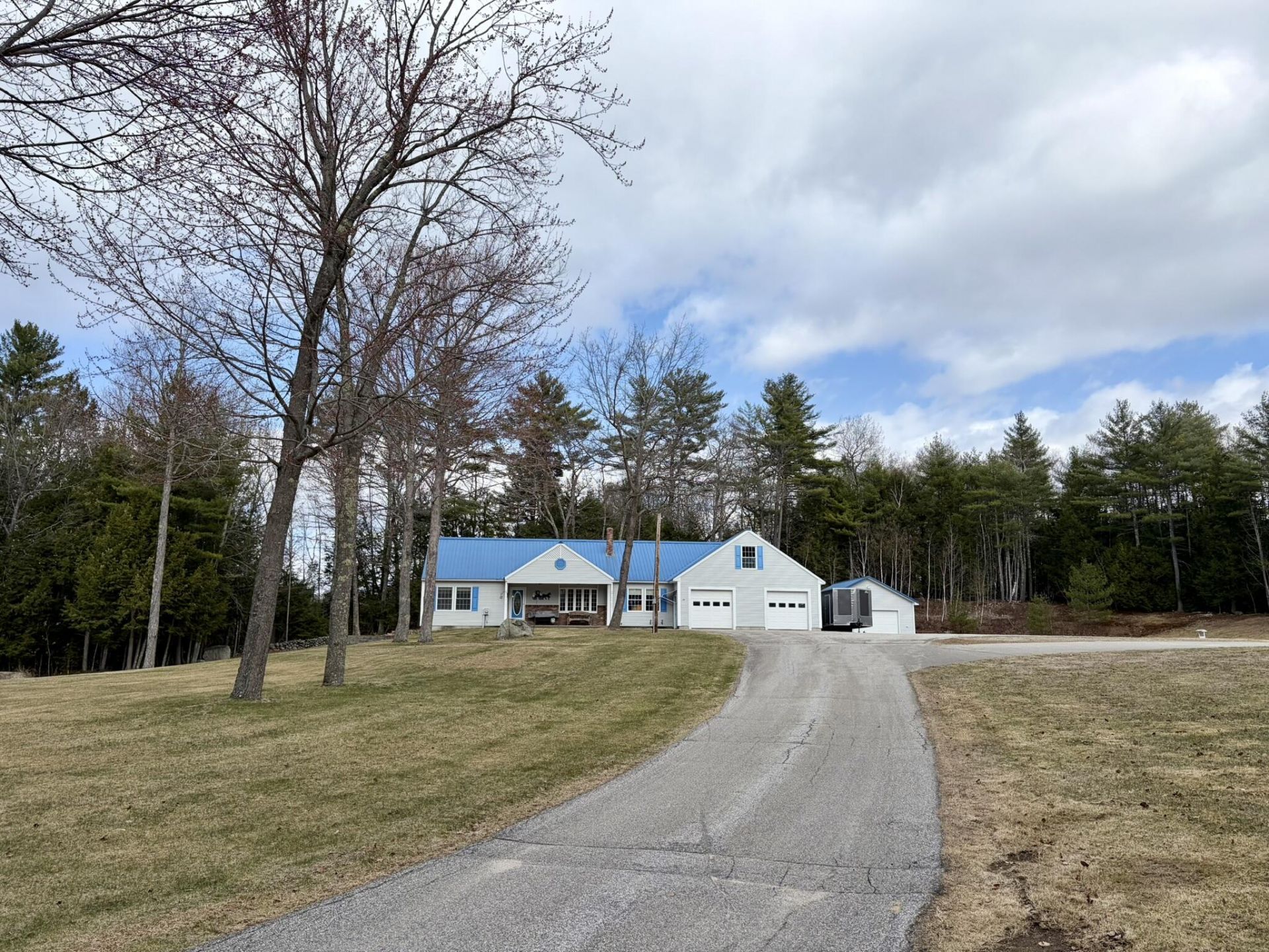 Experience the ease of one-floor living in this desirable ranch set on a peaceful 3-acre lot on a quiet private road. Offering 1414 square feet of sunlit living space, this home features a welcoming front living room with a soaring cathedral ceiling that flows seamlessly into the open kitchen with center island and adjoining dining area--perfect for both everyday living and entertaining. The primary suite includes a private ensuite bath with double sinks and an oversized walk-in shower, while a second bedroom enjoys direct access to a full bath. A practical mudroom entry featuring laundry and utility sink, completes the well-appointed floor plan. A heat pump ensures year-round comfort and efficiency. Car enthusiasts and hobbyists will be thrilled with the exceptional garage and storage options. The attached 30x40 heated three-car garage is equipped with radiant floor heat, creating the ideal workspace year-round. In addition, a detached 24x24 two-car garage and a basement with its own overhead door provide incredible flexibility for equipment or recreational toys such as boats, tractors and snowmobiles. Combining comfort, functionality, and an unbeatable setting, this property truly offers the perfect blend of lifestyle and practicality. Worry-free living with a built in propane generator.